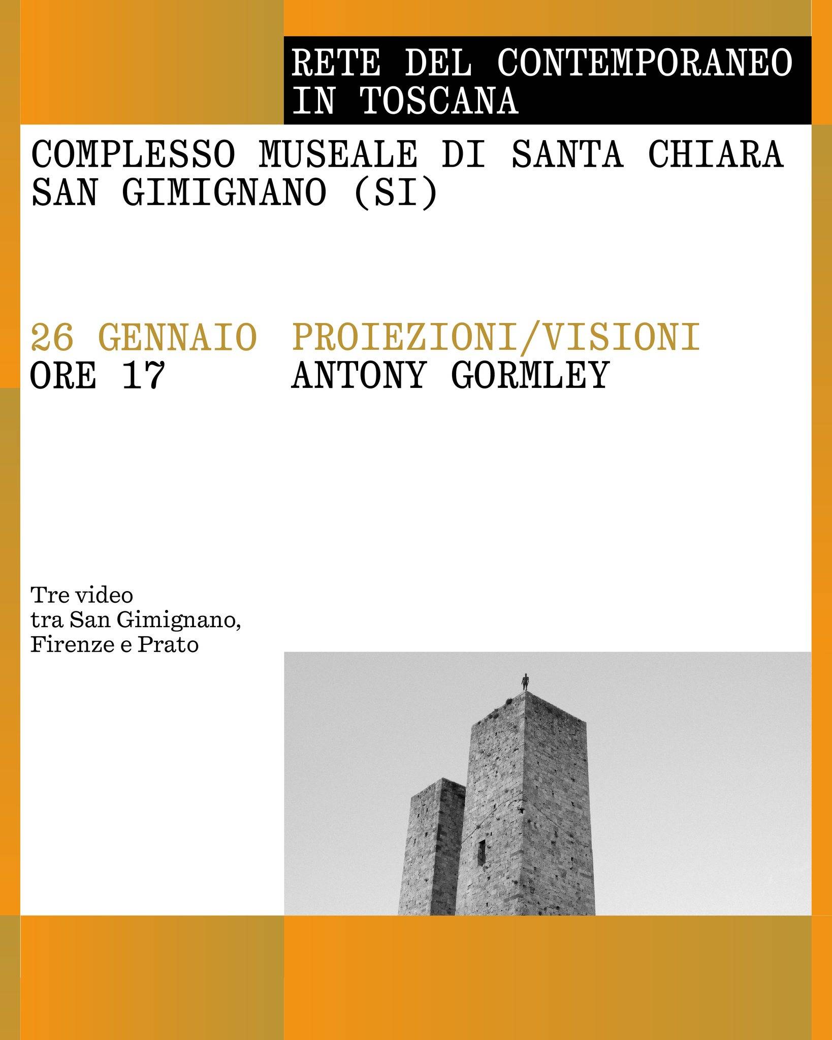 Lunedì 26 gennaio 2026, alle ore 17:00, il Complesso Museale di Santa Chiara a San Gimignano ospita un nuovo appuntamento del calendario diffuso della Rete del Contemporaneo.