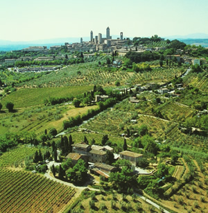 <p>Santa Croce farmhouse is a small medieval town that, in past times, offered accomodation to the pilgrims who, walking along the <strong>Via Francigena</strong>, couldn't find place in Sant'Agostino Monastery in San Gimignano. At only 400 mt from San Matteo Entrance, Santa Croce is surrounded by the green tuscan vineyards and easy <strong>to reach by a ten minutes walk</strong> from the center of San Gimignano. San Gimignano has available 3 double rooms and one apartment for 4 people; it is possible to taste our wines on the <strong>panoramic terrace</strong> which offers to our guests a <strong>wonderful view</strong>.</p>