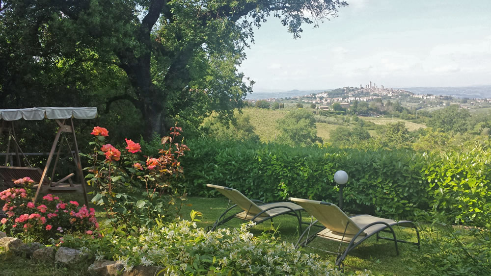 <p><strong>Villa Baciolo is a Holiday Home</strong> plunged in the Tuscan countryside of San Gimignano. This Medieval country house has been transformed in a comfortable <strong>bed and breakfast</strong> but in the respect of the typical architectural characteristics of the region. Surrounded by vineyards, olive trees and secular oaks, it can offer a <strong>spectacular view on San Gimignano</strong>: an ideal place to spend a holiday in Tuscany in direct contact with nature. The main body of the <strong>Holiday Home</strong> is crossed by a particular hall with vault ceiling and which offer a splendid view on the Town of Towers. In this <strong>panoramic terrace</strong> we serve breakfast and dinner if requested. In the solarium is located the <strong>swimming pool</strong>. Villa Baciolo has 10 double rooms and 2 small apartments. Villa Baciolo can offer an all day long bar service. <strong>Free Wi-Fi</strong> service in the rooms and common areas. <a href="https://www.facebook.com/villabaciolotoscana" target="_blank">Villa Baciolo su Facebook</a></p>