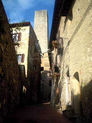 The guesthouse "Il Vicolo" is situated in the heart of San Gimignano, in a typical, quiet little alley, only50 m.from the famous Piazza della Cisterna. In the flat there are two rooms available: a double room with a little terrace overlooking the Tuscan countryside with ensuite bathroom and a single room. The rooms are very confortable and decorated with soft and gentle colours. The double room also has air-conditioning. For guests that need to have use of a kitchen, on the 1st floor of the guesthouse, there is a very nice kitchen with views onto the alley below and to an old Tower-Palace of San Gimignano. Furthermore, to help our guests, we provide a parking space only 100 mt. from the guesthouse. At your arrival we will welcome you with readiness and good humor, and we will be pleased to advise you on what to visit and where to taste the typical wine and food of the town and local area. WELCOME TO SAN GIMIGNANO! <a href="https://www.facebook.com/pages/Affittacamere-Il-Vicolo/154420054717991" target="_blank">Il Vicolo on Facebook</a>