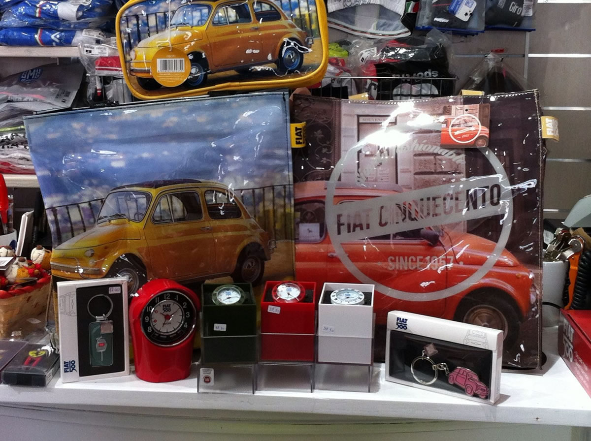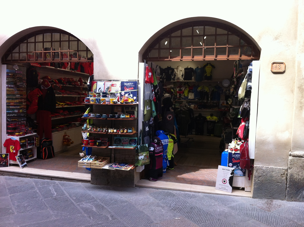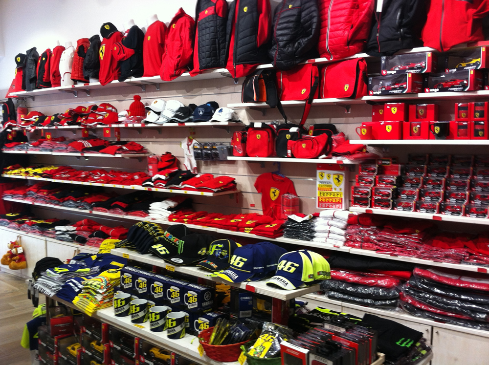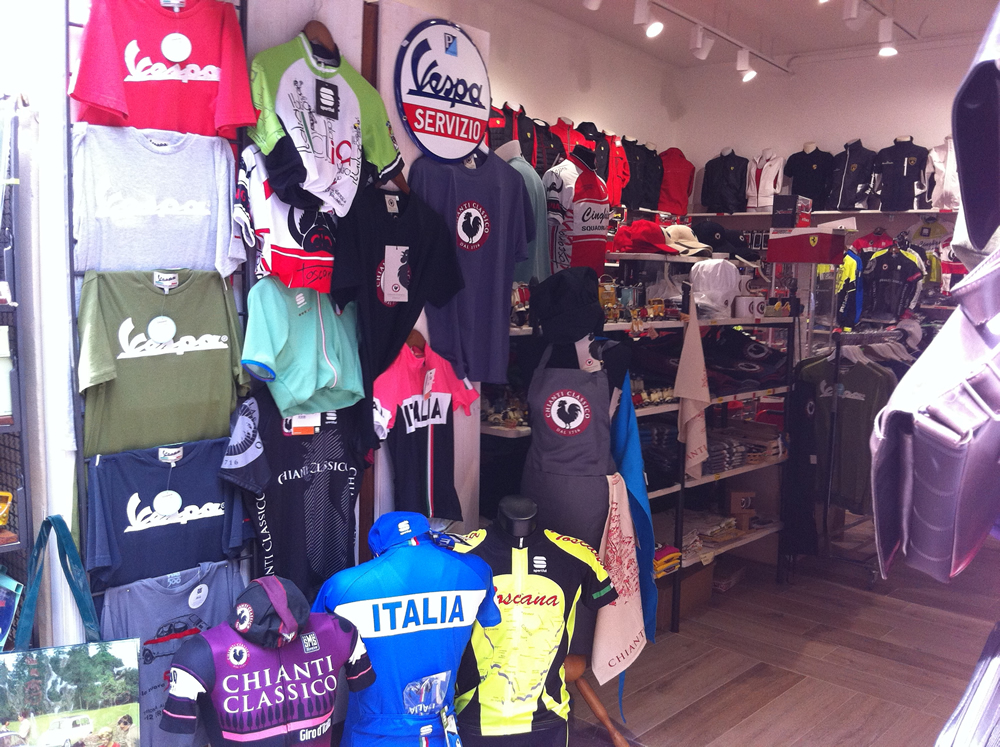 <p>Nel nostro negozio troverete un <strong>vasto assortimento</strong> dei <strong>migliori marchi italiani</strong> come FERRARI, <strong>Valentino Rossi</strong>, VESPA, <strong>Chianti Classico</strong> e un ampia scelta per gli <strong>amanti del ciclismo</strong>. Vi aspettiamo!</p>